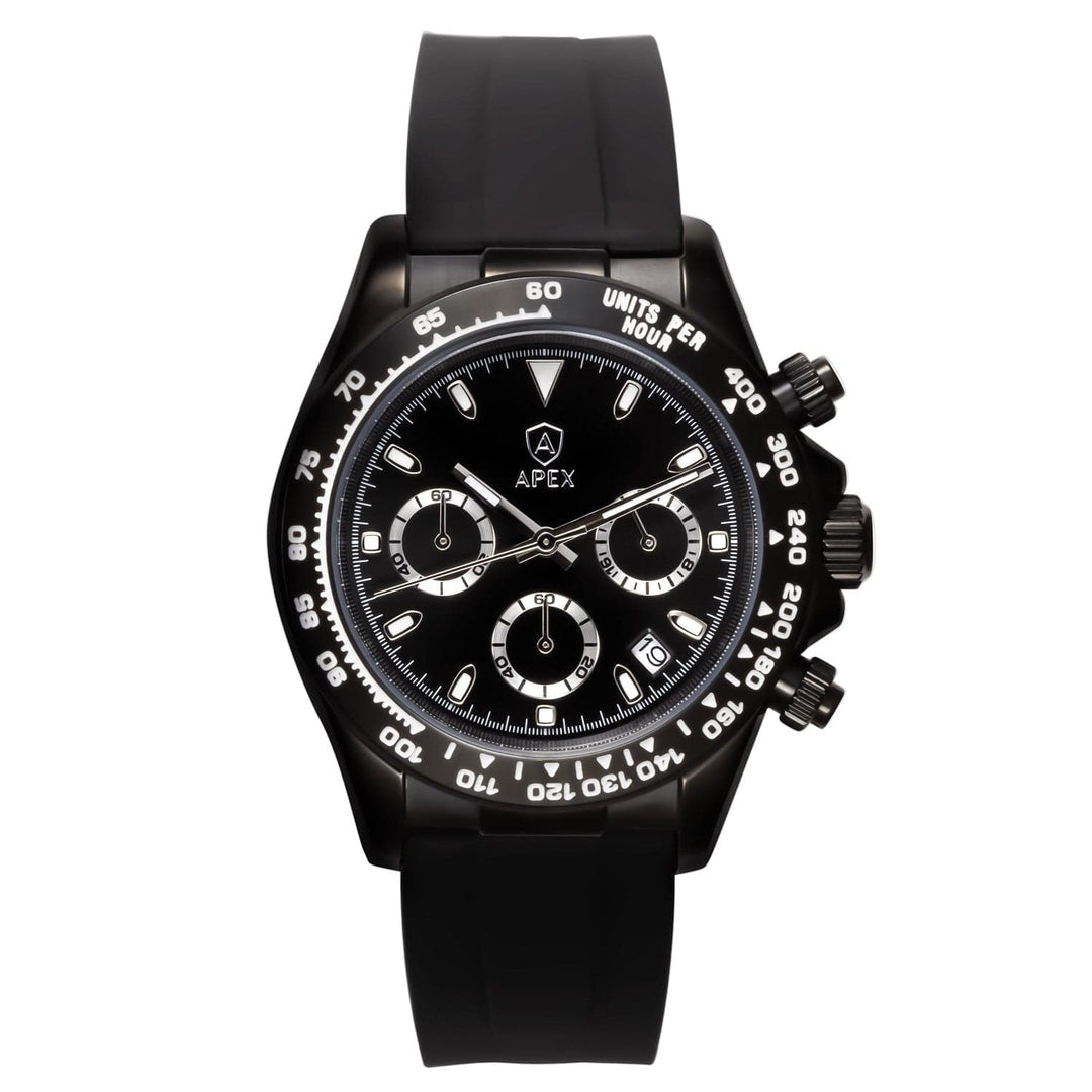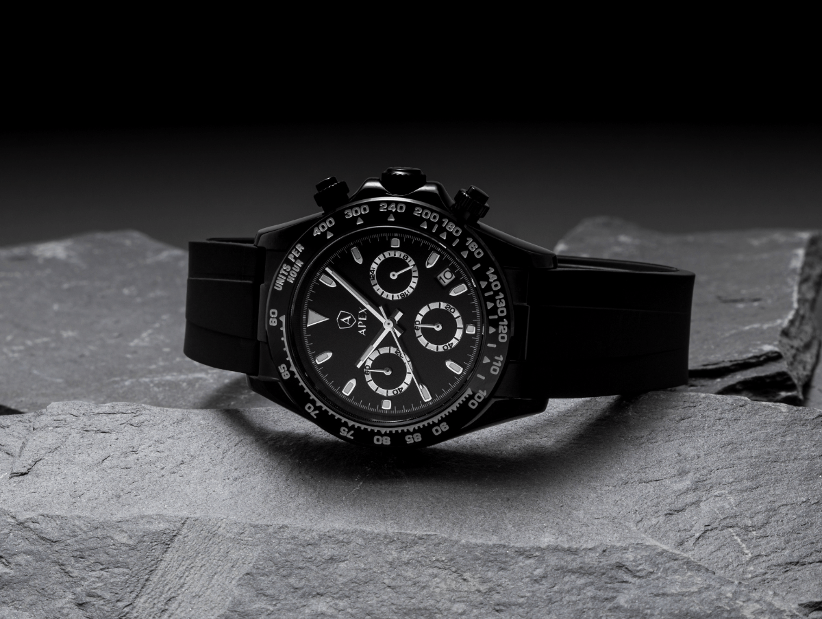 The high-contrast dial features sharp sub-dials and luminous markers, framed by a bold tachymeter bezel that echoes the dials of classic race instruments. Housed in a gunmetal case, every detail is engineered for clarity and control - because timing is everything when you’re on the move.